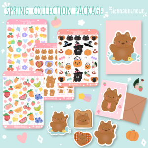 “For most of my collections, I give myself about two months from idea to final product,” she tells Supanova, “However, sometimes I get ideas that I really like and do it all in one day. […] It starts with an idea, image or memory, then I start to sketch how I’d like it to look, workshop a few versions ask my friends or Instagram [followers] for their opinion, and work from there. Once I’m happy, it will go to print, or if it is a sticker sheet I will compose the arrangement on the sheet then print, cut, and then it’s [product] photography time.”